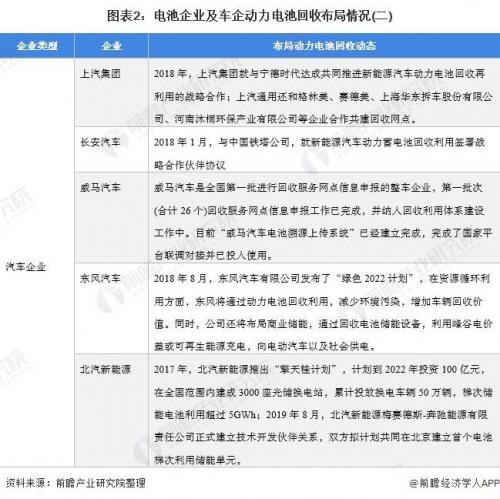 大量车企、动力电池企业竞相布局动力电池回收业务