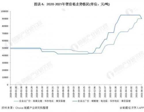 其次,前瞻认为这些企业布局的第二个原因是电池原材料的上涨。以碳酸锂为例,碳酸锂作为锂电池的主要正极材料之一,自2021年年初以来,受到北方地区天气及南方地区限电的影响,碳酸锂的产量较低,同时新能源汽车和电动自行车下游需求拉动动力电池企业订单火爆,造成供不应求,电池级碳酸锂的出厂价从4.3万元/吨增至9.5万元/吨。