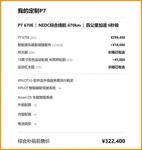 但从涉事订单来看,加装配置选装颜色后的小鹏P7,综合售价已经达到了322400元。那么为何购车合同却依旧是指导价29.94万元呢?