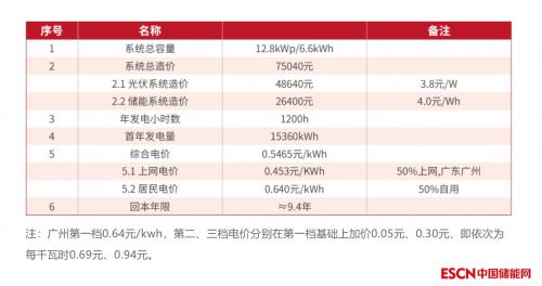 以单户12.8kWp/6.6kWh储能系统来测算: