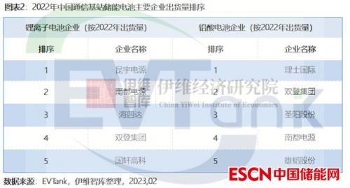 从通信基站储能用铅酸电池来看,目前的主要参与者包括理士国际,南都电源、雄韬股份、双登集团、圣阳股份等,在通信基站储能用锂离子电池领域,除了之前的铅酸电池企业转型提供基站用锂离子电池产品之外,包括昆宇电源、海四达、国轩高科、宁德时代、比亚迪、亿纬锂能和ATL等专注于锂离子电池企业也在积极开拓通信基站储能领域。EVTank数据显示,2022年理士国际和昆宇电源分别在通信基站储能用铅酸电池和锂离子电池领域排名第一。