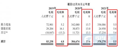 同时毛利率也有较大差距,2019年-2021年,中创新航的动力电池毛利率分别为5.2%、13.7%及5.5%,而宁德时代2017-2020年动力电池系统的毛利率分别为35.25%、34.1%、28.45%、26.56%。