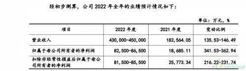 这家正在闯关深圳创业板、计划IPO的公司透露,因全球光伏、储能市场需求快速增长,该公司预计2022年全年实现营收43亿元~ 45亿元,同比增长135.53%至146.49%,归母净利润8.25亿元~ 8.65亿元,同比上升341.53%~ 362.94%,扣非净利润8.15亿元~8.55亿元,同比增长216.22%至~231.74%,公司经营业绩保持了高速增长态势。