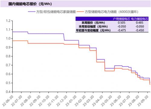 放眼产业上游,碳酸锂价格下半年再度腰斩,两个月来跌近十万,创年内新低;看储能电芯,据鑫椤锂电数据显示,磷酸铁锂方形储能电芯价格从1月6日的0.96元/Wh,降至9月28日0.51元/Wh,降幅达到46.88%。