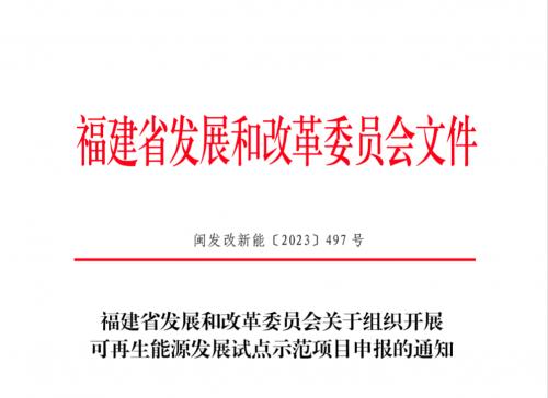 近日,福建发改委发布了十二项可再生能源发展试点示范项目申报的通知。