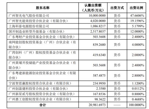 本次智光电气与广东粤财产业投资基金合伙企业(有限合伙)、国开制造业转型升级基金(有限合伙)、南网能创股权投资基金(广州)合伙企业(有限合伙)、广湾创科(广州)股权投资基金合伙企业(有限合伙)、广州黄埔开投储能产业投资基金合伙企业(有限合伙)、广东粤建新能源创业投资基金合伙企业(有限合伙)、宁波智思赢股权投资合伙企业(有限合伙)、广州创盈健科投资合伙企业(有限合伙)、广州新星贰号股权投资合伙企业(有限合伙)等投资机构签署增资协议。增资之后,智光电气仍掌握控股权。