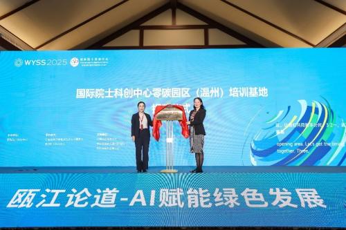 在论坛上,岳媛先后与中国投资协会能投委常务副秘书长姜艺、世界数字科学院执行主任许木娣,分别为“国际院士科创中心零碳园区(温州)培训基地”和“国际院士科创中心人工智能(温州)培训基地”揭牌。这一举措为AI技术的落地与人才培养搭建了坚实的实体平台。