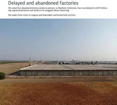 此外,FF公司曾承诺在7个月内重新启动其位于美国加州的汉福德工厂并大规模生产电动汽车,但J Capital Research在报告中表示,其在8-9月三次参观工厂,发现其几乎没有什么动作,公司的负责人也表示仍然有工程问题需要解决。